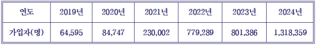 적용제외신청 조항이 유지되던 2019년과 2020년에는 10만 명 밑을 맴돌던 가입자 규모는 2021년에 23만 명으로 늘어나더니 2022~2023년에는 무려 80만 명으로 폭증한다. 2019~2020년에 비하면 3년 만에 무려 10배로 가입자가 늘어난 것은 '적용제외신청'이라는 구멍을 틀어막았기 때문이다.