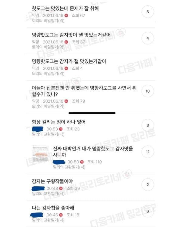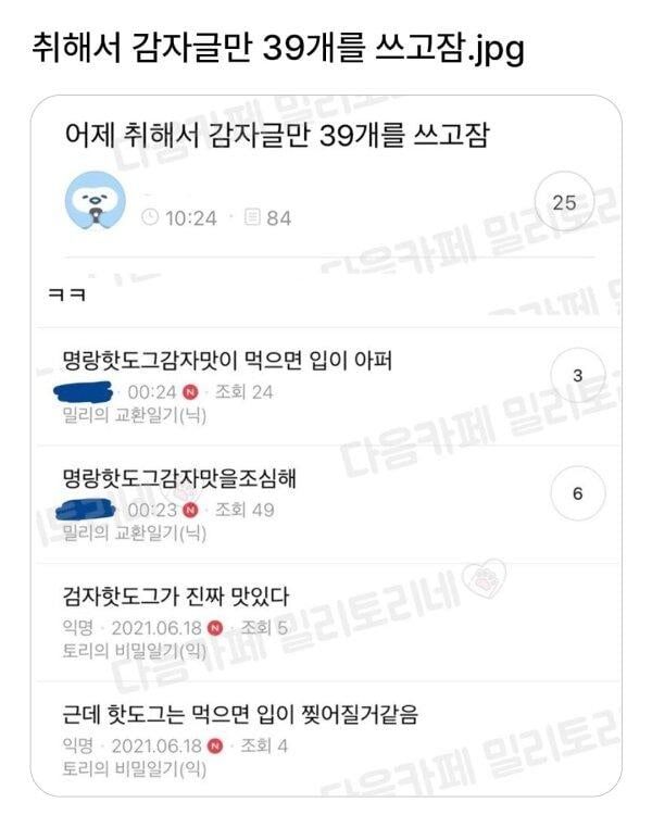감자 안주를 먹었나봐요 ㅋㅋㅋ