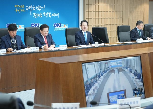 김영록 지사는 이날 오전 동부청사에서 새해 첫 동부권 정책회의를 열어 “지난해 비상계엄으로 시국이 얼어붙고 국가 신인도가 떨어지고 여객기 참사까지 겹치면서 전남뿐만 아니라 국가적으로 어려운 상황이어서 민생경제뿐만 아니라 다른 모든 분야도 철저히 챙겨야 한다”며 이같이 밝혔다.