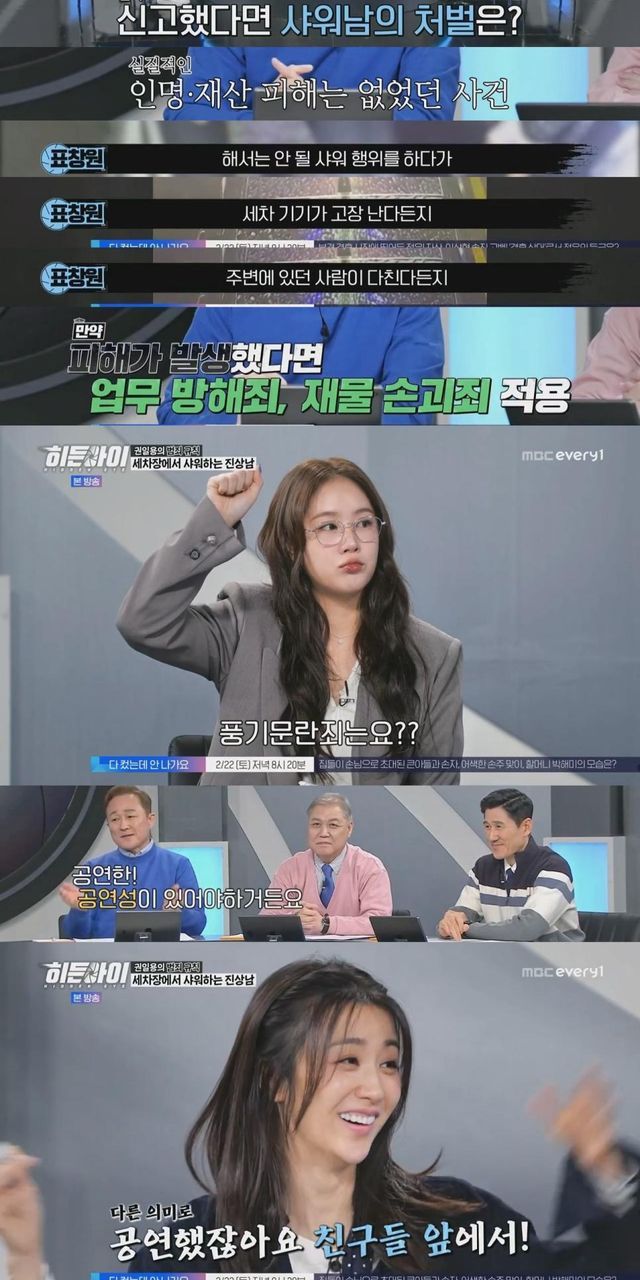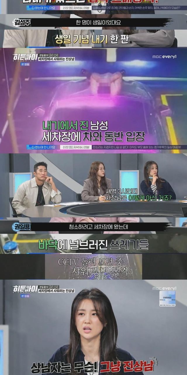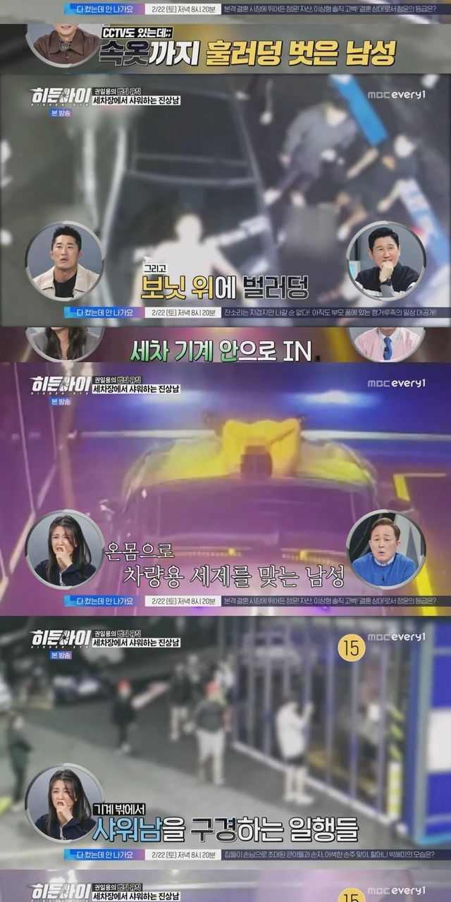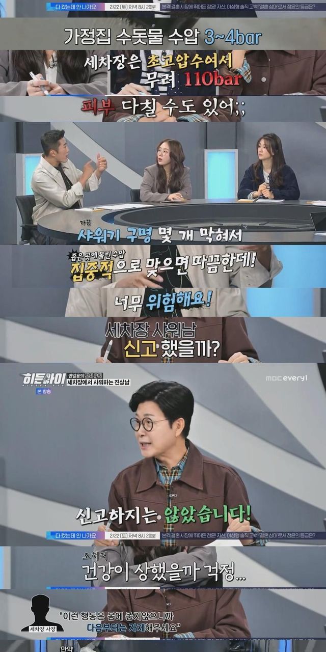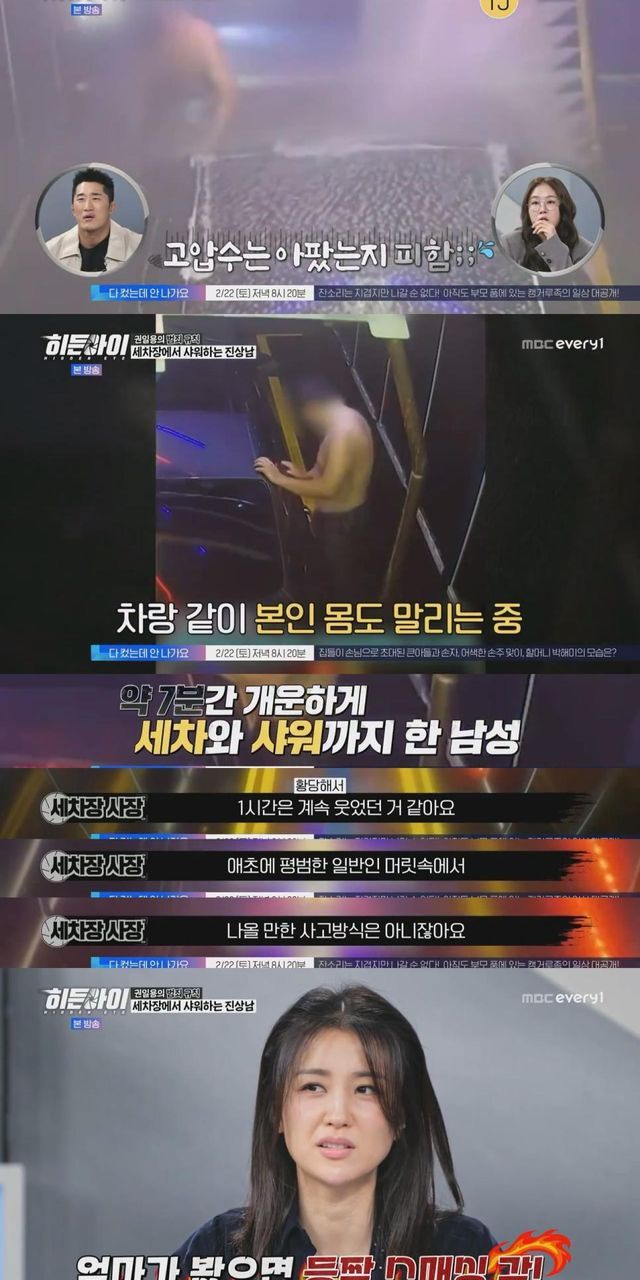 무인자동세차장에 들어가서 세차와 샤워를 같이한 남자