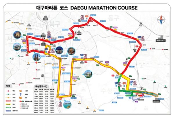 한편, 대구시와 대구경찰청은 대회 준비기간 중 현장답사를 실시하고 교통소통 방안을 논의해 우회도로를 확보하고, 인근 주민 교통통제 사전안내를 실시했으며, 대회 당일에도 코스 구간 교통통제로 인한 시민 불편을 최소화하기 위해 노력할 예정이다.