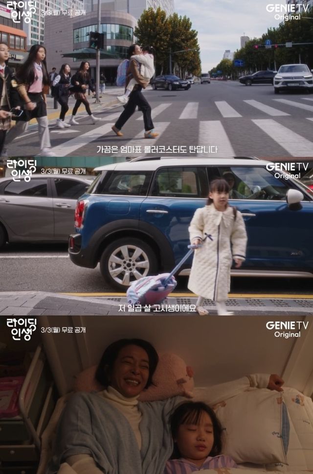 오는 3월 3일 공개되는 지니 TV 오리지널 드라마 '라이딩 인생'은 딸의 '7세 고시'를 앞둔 열혈 워킹맘 정은이 엄마 지아에게 학원 라이딩을 맡기며 벌어지는 3대 모녀의 '애'태우는 대치동 라이프를 그린 드라마다.