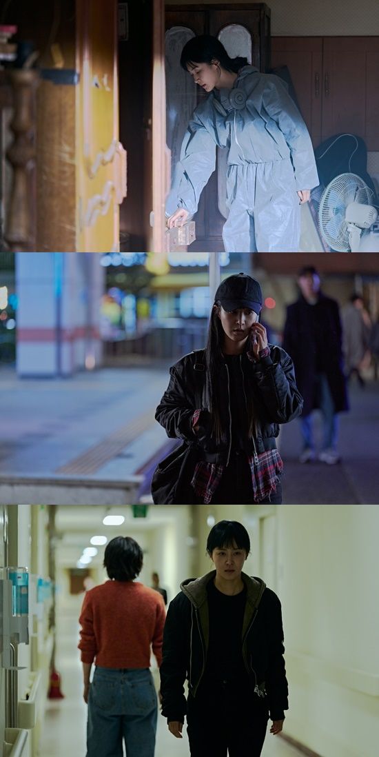 공개된 스틸은 고독사 현장에서 청소를 하는 민의 모습과 모자를 푹 눌러쓰고 통화하며 누군가와 거래하기 위해 길가에 서 있는 차갑고 어두운 얼굴로 시선을 사로잡는다.