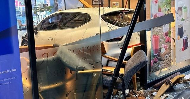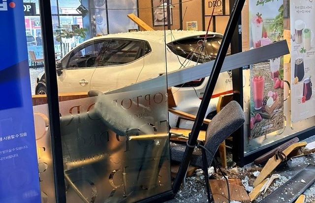 차량은 출입문 쪽 유리를 깨고 매장을 가로질러 반대편 유리문까지 들이받은 뒤에야 멈춰 섰다.
