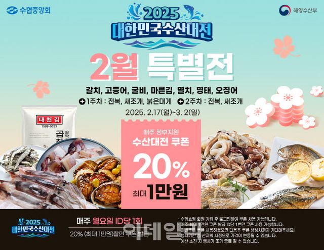 수협쇼핑 관계자는 “봄을 앞두고 겨울 바다가 주는 마지막 선물과도 같은 제철 수산물을 저렴한 가격에 구매할 수 있는 좋은 기회”라고 설명했다.