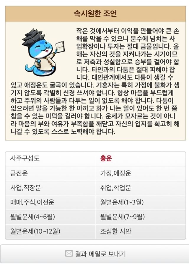 온라인 사주 전문 사이트 '위키사주'는 오랜 전통을 바탕으로 한 사주팔자와 현대적인 분석 기술을 결합하여 각자의 운명을 상세히 분석한다. 이름과 생년월일, 태어난 시간과 성별을 입력하면 간단하게 이용할 수 있다. 만사형통 내 운명의 비밀 사주, 쓸모있는 사주 감정, 복잡한 세상 편하게 사는 소름돋는 비법 사주까지 다양한 운세를 재미있게 점칠 수 있다.