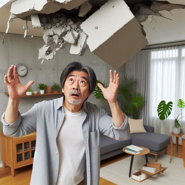 천장에서 가로 60cm, 세로 30cm 크기의 콘크리트 덩어리가 떨어져 거실 바닥에 깔려 있던 이불 위로 떨어졌다. 그 무게는 20kg에 달했다.