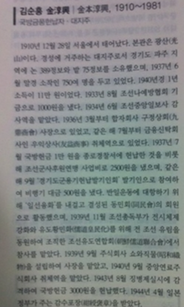 김순흥은 일제강점기 대지주였으며, 친일반민족행위자로 분류돼 친일인명사전에 등재된 인물이다.