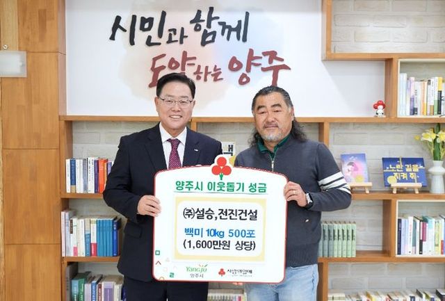 이번 전달식에는 강수현 양주시장과 ㈜설승건설 전성열 대표가 참석했으며 성품은 경기 사회복지공동모금회를 통해 양주시 관내 취약계층에 전달될 예정이다.