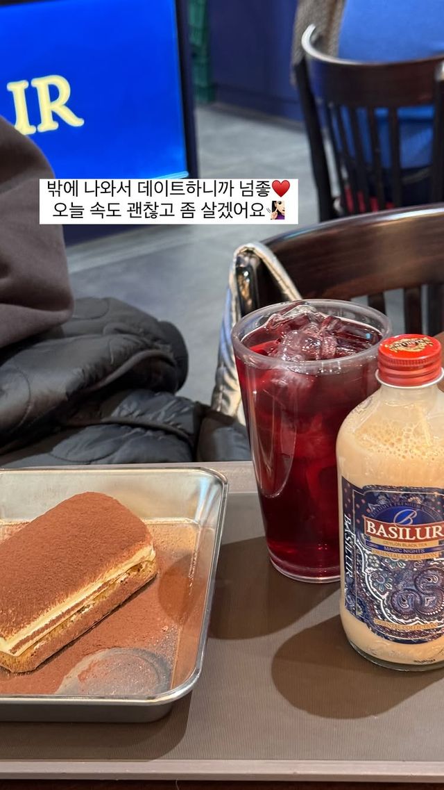 김지혜는 19일 자신의 SNS에 "밖에 나와서 데이트하니까 넘좋. 오늘 속도 괜찮고 좀 살겠어요"라는 글과 함께 카페를 방문한 사진을 올렸다.