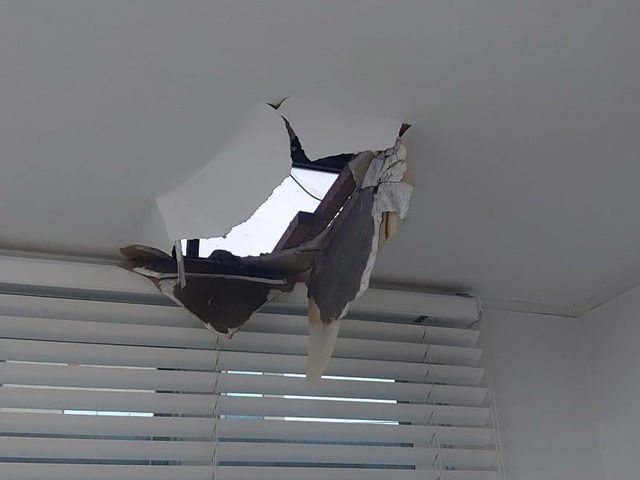 만약 거실에서 사람이 자고 있었다면 큰일날뻔한 상황.