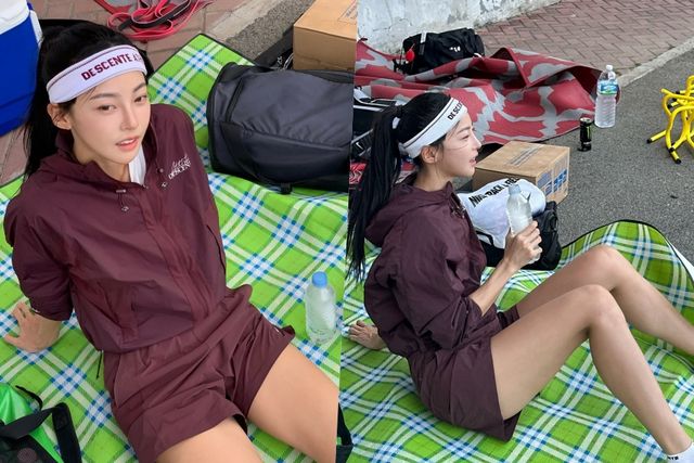 공개된 사진 속 김민지는 운동복을 입은 채 돗자리에 앉아 휴식을 취하고 있는 모습이다. 짧은 숏팬츠를 입고 있는 김민지는 운동으로 다져진 탄탄한 허벅지와 늘씬한 다리 각선미를 드러내 시선을 강탈했다.