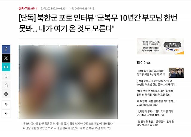 <조선일보>가 러시아-우크라이나 전쟁에 참가한 북한군 포로 인터뷰를 보도하면서 얼굴을 그대로 노출시킨 데 대해 정부는 본인 및 가족들 신변에 불이익이 발생할 가능성이 크다며 우려와 유감을 표명했다.