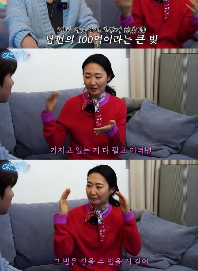 그러면서 그는 "그때는 내가 둘째 낳은 지도 얼마 안 되고 너무 어렸다. 사실 '빚이 10억이야' 이러면 뭐라 그랬을 거다. 너무 큰 금액이어서 와닿지 않았다"며 얘기했다.
