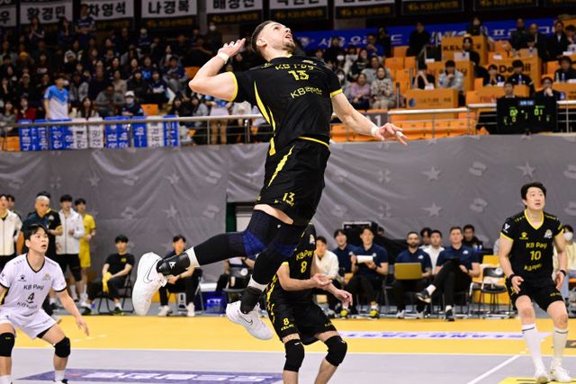 KB손해보험은 19일 의정부 경민대체육관에서 열린 프로배구 도드람 2024~25 V리그 5라운드 우리카드와 홈경기에서 세트스코어 3-1(25-20 26-28 25-19 25-21)로 승리했다.
