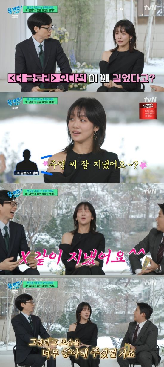 특히 유재석은 "이 '더 글로리'가 오디션이 꽤 길었다더라. 계속된 오디션 끝에 어느 날 한계치에 도달해서 갔는데 이때 결정적인 일이 있었다더라"라며 관심을 나타냈다.