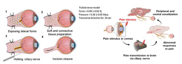 기존의 신경병성 각막통증 모델은 주로 안 신경(ophthalmic nerve) 또는 섬모체 신경(ciliary nerve)의 절단을 통해 설계됐으나, 이는 임상에서 관찰되는 점진적인 신경 변화와 신경병성 통증 발생 기전을 충분히 반영하지 못하는 한계가 있었다.