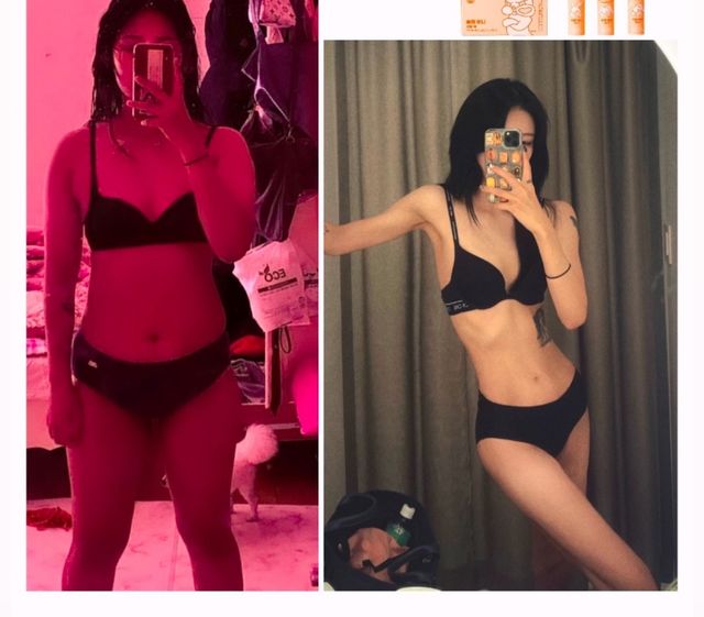 공개된 사진 속 최준희는 블랙 언더웨어를 입고 다이어트 전후 비교를 하고 있는 모습이다. 다이어트 전 통통한 복부와 군살 있는 몸이었던 최준희는 현재 갈비뼈가 드러날 만큼 초슬렌더 몸매가 된 모습이다. 다이어트 후 남다른 옷 핏을 자랑하고 있는 최준희의 마른 몸이 눈길을 끈다.