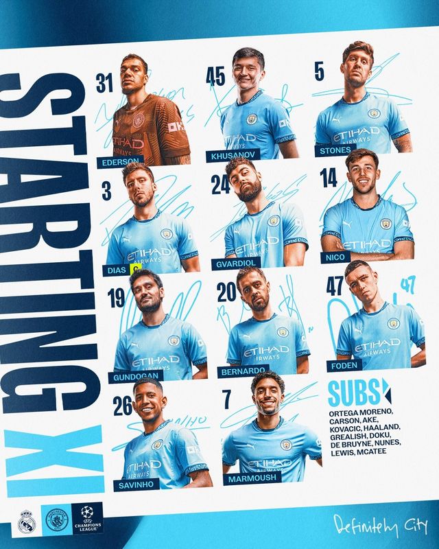 원정을 떠난 맨시티도 4-2-3-1 포메이션으로 맞섰다. 에데르송이 골키퍼 장갑을 착용했고, 요슈코 그바르디올, 후벵 디아스, 존 스톤스, 압두코디르 후사노프가 백4를 만들었다. 일카이 귄도안과 니코 곤잘레스가 3선을 책임졌고, 사비뉴, 베르나르두 실바, 필 포든이 2선에서 최전방의 오마르 마르무시를 지원했다.