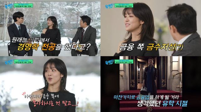 이를 듣던 유재석은 “배우 활동을 안 하셨어도 금융 쪽에 펀드 매니저나 애널리스트가 돼서 뉴스에 나왔다가 화제가 돼서 ‘유퀴즈’에 나왔을 거다”라고 말해 웃음을 자아냈다. 차주영은 “그런 걸 꿈꿨던 것 같다. 고층 건물에 내 오피스가 있는”이라며 웃어 보였다.
