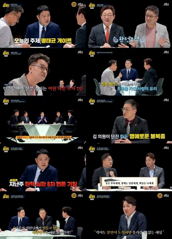 19일 방송된 JTBC ‘특집 썰전’ 6회에서는 MC 김구라의 진행 아래 유승민 전 의원과 이철희 전 의원이 논객으로 출연해 ‘명태균 게이트’에 대한 토론을 벌였다. 더불어민주당 부승찬 의원, 국민의힘 김상욱 의원, 조국혁신당 신장식 의원, 개혁신당 이준석 의원은 ‘여야의 밤’에서 탄핵심판을 주제로 흥미로운 입장을 전하며 시청자들의 시각을 업그레이드했다.