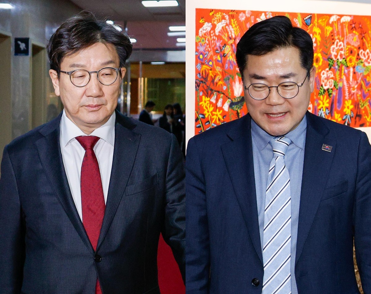 권성동 국민의힘 원내대표(왼쪽)와 박찬대 더불어민주당 원내대표. / 뉴스1