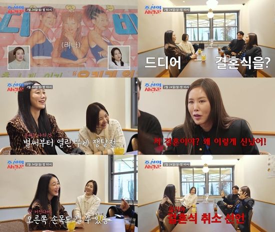 이에 아직 미혼인 지니는 "(결혼식에) 우리 뭐 입지?", "부케 내가 받아야 한다"며 잔뜩 들뜬 모습을 보였다. 이런 상황에서 '돌싱 맘' 민경 또한 "저도 있다"고 맞받아쳐, 지니와의 '부케 쟁탈전'에 돌입했다.