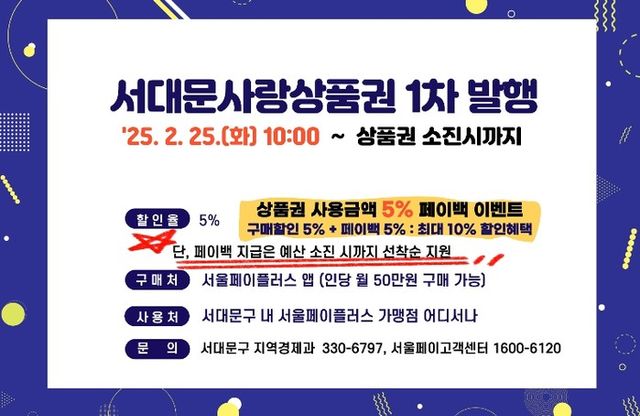 2024년 4월 이후 발행된 서대문사랑상품권을 이달 25일 이후 결제하면 5% 환급이 이뤄지는데 이 경우 실제로는 소비자가 10%를 할인받게 되는 셈이다.