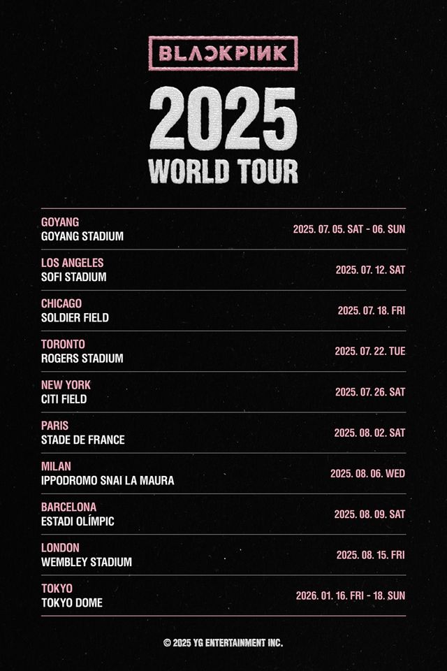 블랙핑크(BLACKPINK)가 스타디움 공연을 포함한 초대형 규모의 2025년 월드투어 1차 플랜을 발표했다.