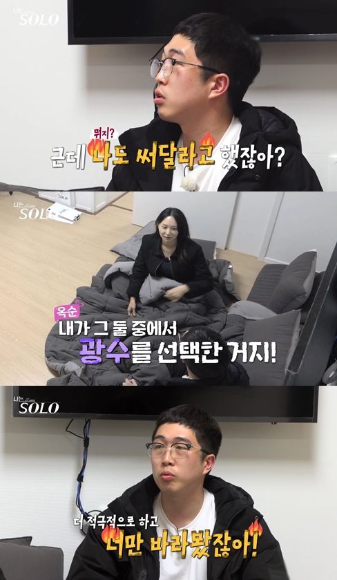 옥순은 "그렇긴 하지만 내가 둘 중에서 광수를 선택한 거다"라고 분명하게 밝혔다. 그럼에도 영식은 "더 적극적으로 하고 너만 바라보지 않았냐"라며 옥순을 원망했다.
