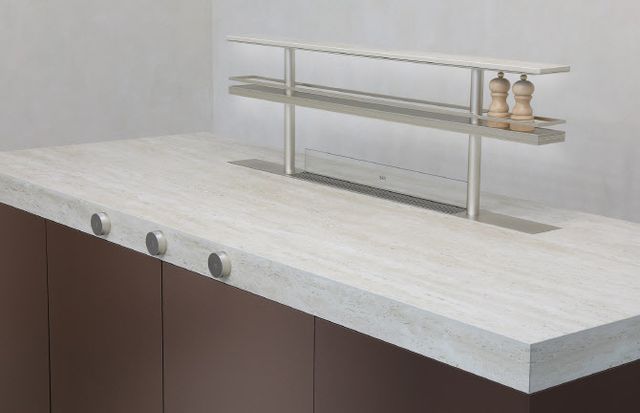 테이블 아래에 설치하는 히든 인덕션은 평소에는 보이지 않고 요리할 때만 화구가 불빛으로 표시돼 주방을 깔끔하게 유지할 수 있다. 일체형 후드는 사용하지 않을 때 조리대 아래로 수납 가능하다. 또 에어커튼 기술을 도입해 요리할 때 발생하는 연기와 유증기를 아래쪽 통풍구로 유도하며 효율적으로 제거한다.
