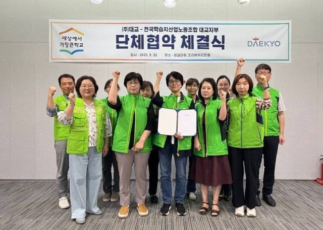 판결이 나자마자 사측은 드디어 교섭하자는 공문을 보내왔습니다. 2022년 3월 상견례를 시작으로 단체교섭이 시작됐고, 대교지부는 교섭 1년 8개월 만인 2023년 9월, 특수고용 노동자 최초의 근로시간면제제도(타임오프) 조항이 담긴 첫 단체협약을 사측과 체결했습니다. 대교지부를 만든지 23년만이었습니다.