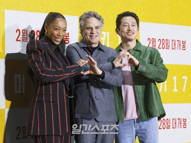 20일 오전 서울 성동구 메가박스 코엑스에서는 영화 ‘미키 17’ 기자간담회가 열렸다. 이 자리에는 봉준호 감독을 비롯해 배우 나오미 애키, 스티븐 연, 마크 러팔로, 최두호 프로듀서가 참석했다.