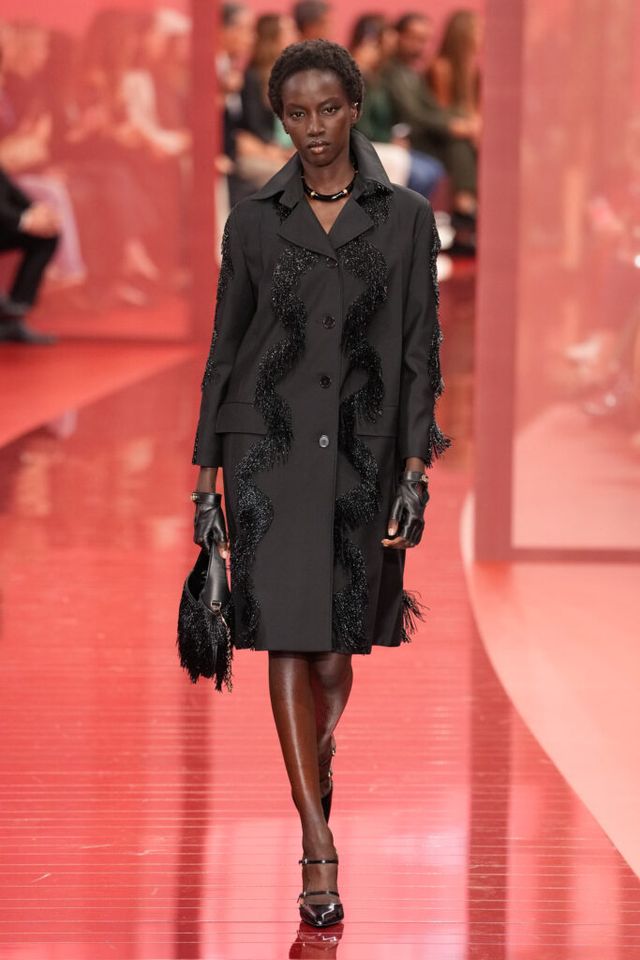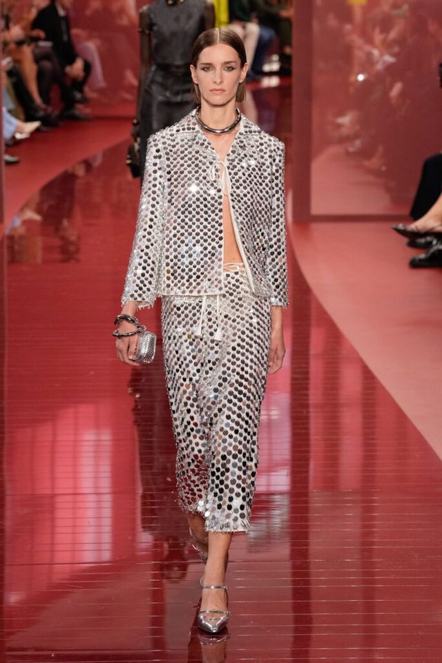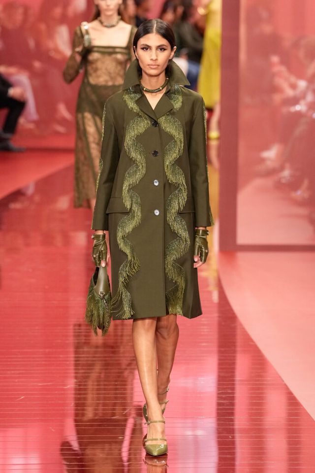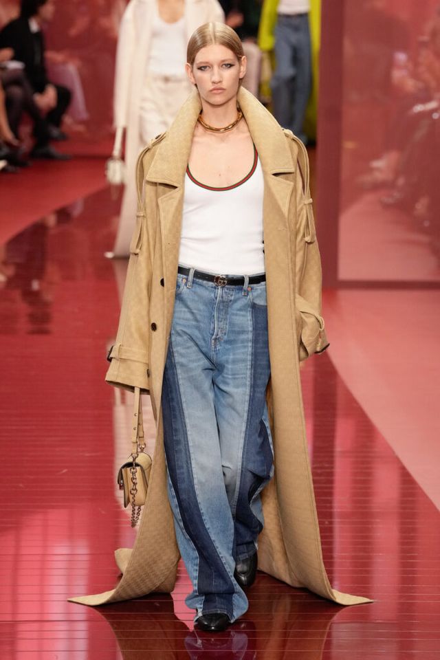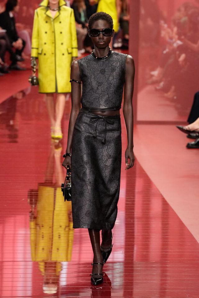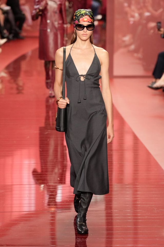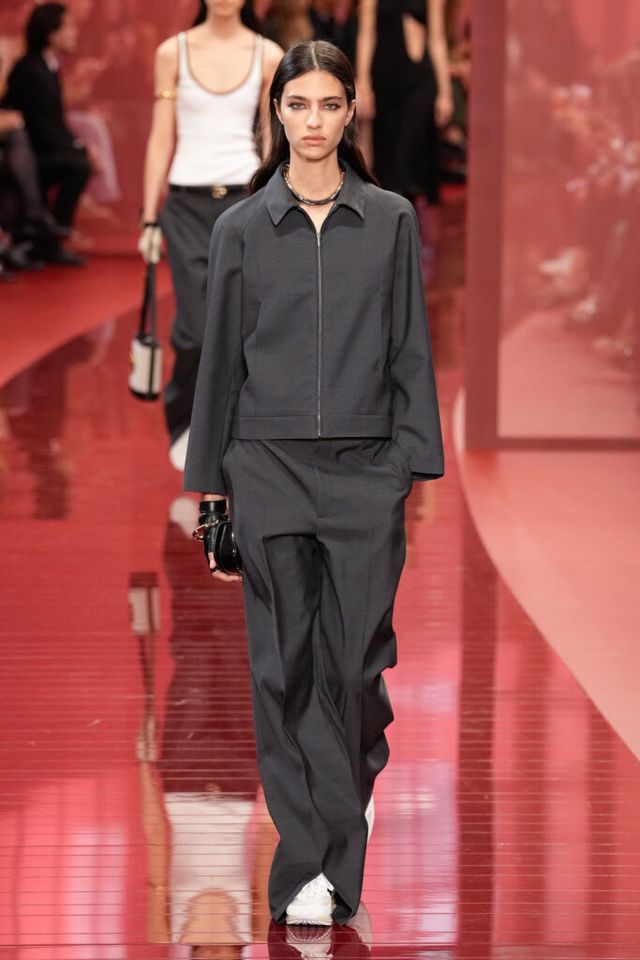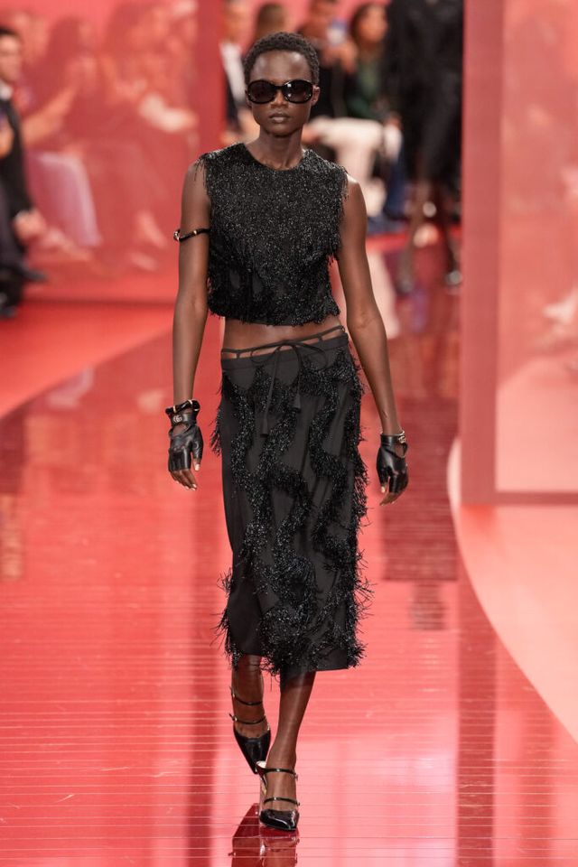 NOTE ‘태양이 바닷속으로 잠기는 찰나는 온전한 우리 자신을 발견할 수 있는 순간’이라는 이야기를 담고 싶었던 사바토 데 사르노. 화이트, 옐로, 오렌지, 짙은 버건디의 구찌 로소 앙코라로 점차 깊어지며 여름날의 석양빛에서 영감을 받은 컬러가 중심을 이뤘다. ‘캐주얼한 우아함’이 깃든 1960년대 식 실루엣은 당장 입고 해변으로 뛰어가고 싶을 만큼 센슈얼하고 감각적이다. 피날레에서는 마치 해변에서 리듬을 타는 듯한 모델들의 흥겨움으로 고조되며 아름다운 구찌의 여름을 완성했다.