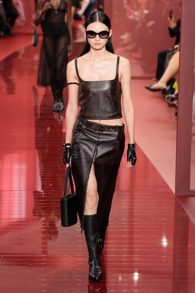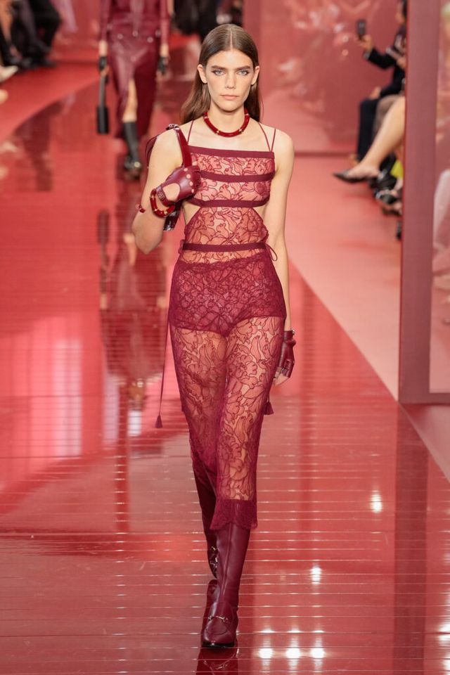 FAVORITE LOOK 구찌 로소 앙코라 컬러의 센슈얼한 레이스와 볼드한 뱀부 액세서리가 조화로운 룩