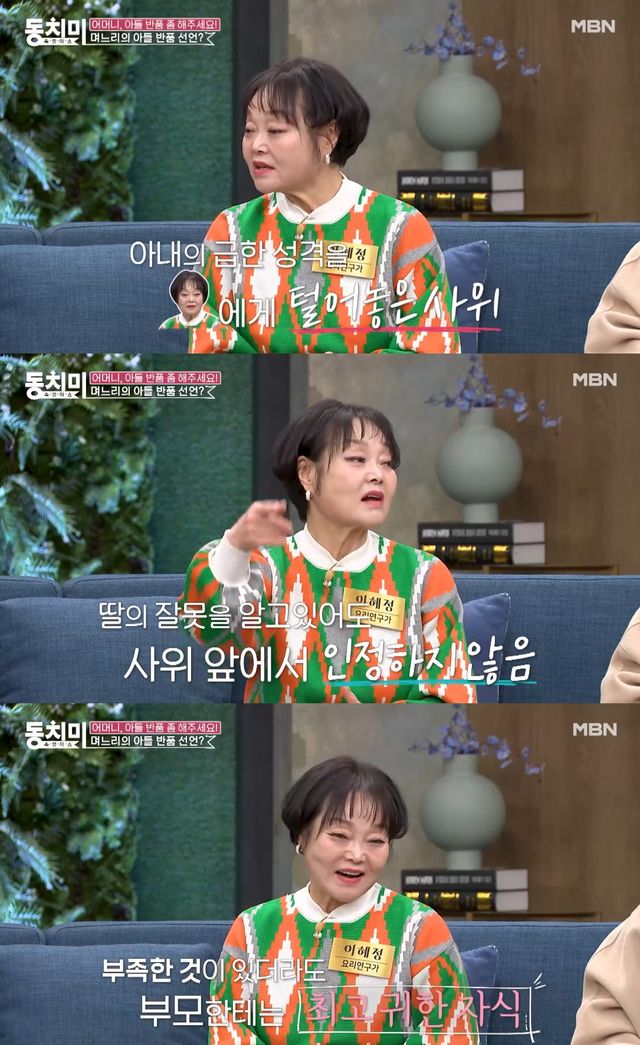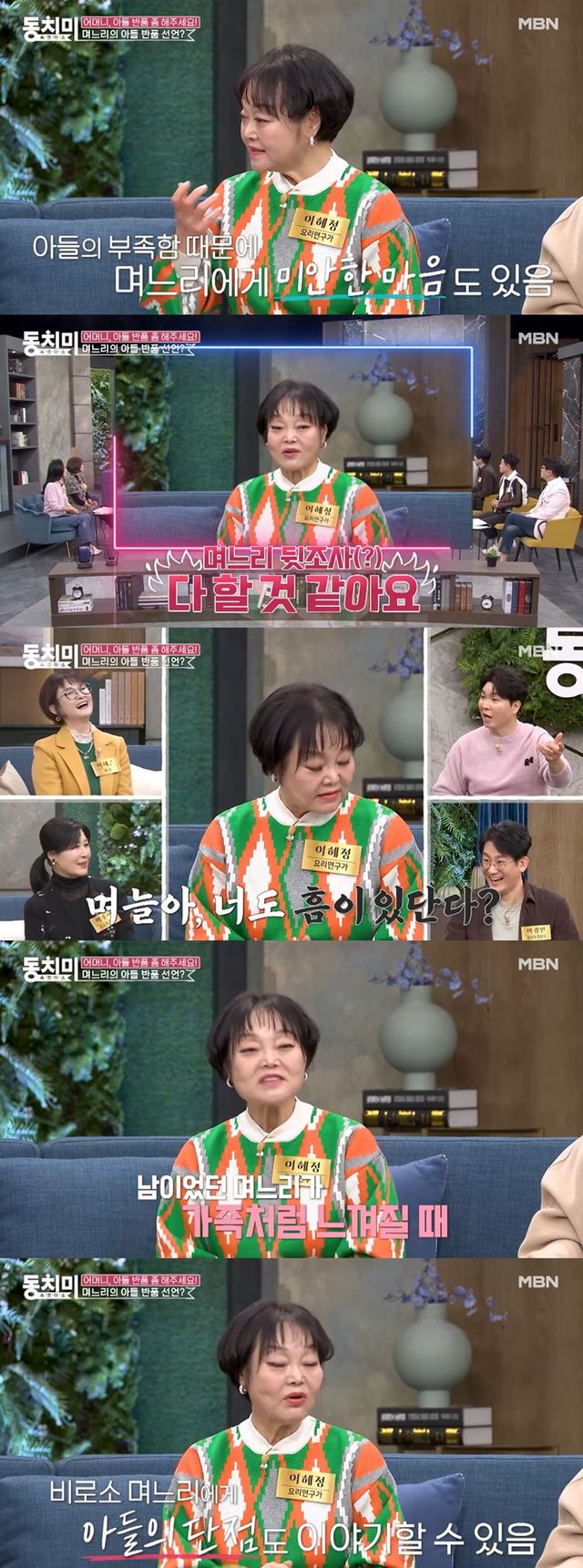 이혜정은 "엄마라는 건 기본적으로 결혼 전에는 내 아들이 어떻든 무조건 내 아들이라고 생각한다. 같이 살겠다는 며느리보단 내아들이 무조건 아깝다"고 솔직히 밝혔다.