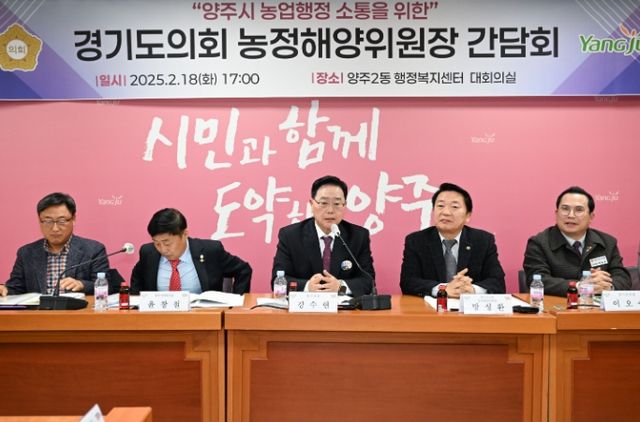 강수현 양주시장이 최근 ‘양주2동 행정복지센터 대회의실’에서 열린 ‘경기도의회 농정해양위원장 간담회’에 참석해 관내 주요 농정 과제에 대한 실효성 있는 지원을 요청했다.