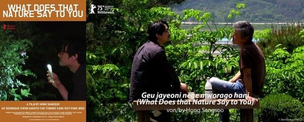 홍상수 감독의 33번째 장편 신작인 '그 자연이 네게 뭐라고 하니'는 제75회 베를린국제영화제 경쟁 부문에 공식 초청되었으며, 그들의 출국은 이 영화의 프레스 컨퍼런스와 관련이 있다.