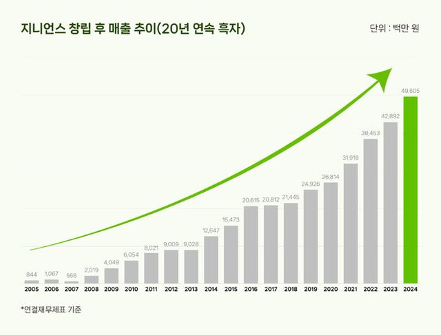 지니언스는 2024년 연결기준 영업이익 98억 원을 기록하며, 전년 대비 52.2% 성장했다고 20일 밝혔다. 매출액과 당기순이익 역시 각각 15.7%·74.6% 증가한 496억원·109억원이다.