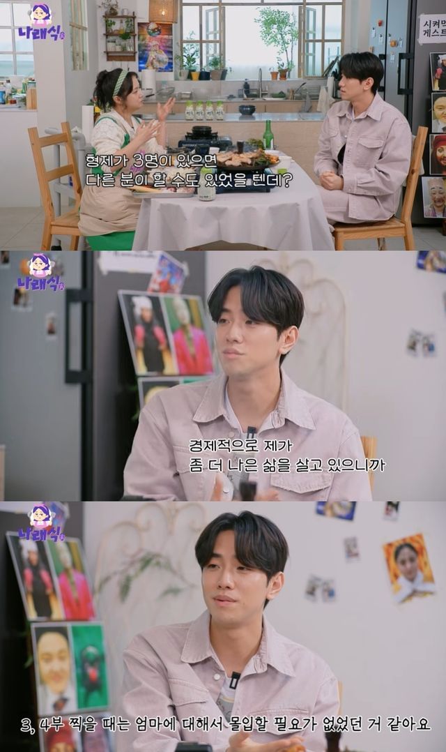 박나래가 "형제가 3명이 있으면 다른 분이 할 수도 있지 않냐"고 조심스레 묻자, 남윤수는 "경제적으로 내가 더 나은 삶을 살고 있으니까 내가 하는 게 최선이라고 생각했다"고 말했다.