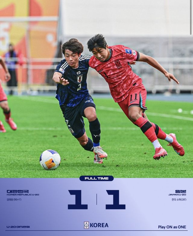 이창원 감독이 이끄는 20세 이하(U-20) 축구대표팀은 20일 오후 4시 중국 선전의 유소년 축구 트레이닝 베이스 1경기장에서 열린 2025 아시아축구연맹(AFC) U-20 아시안컵 조별리그 D조 3차전에서 일본과 1-1로 비겼다.