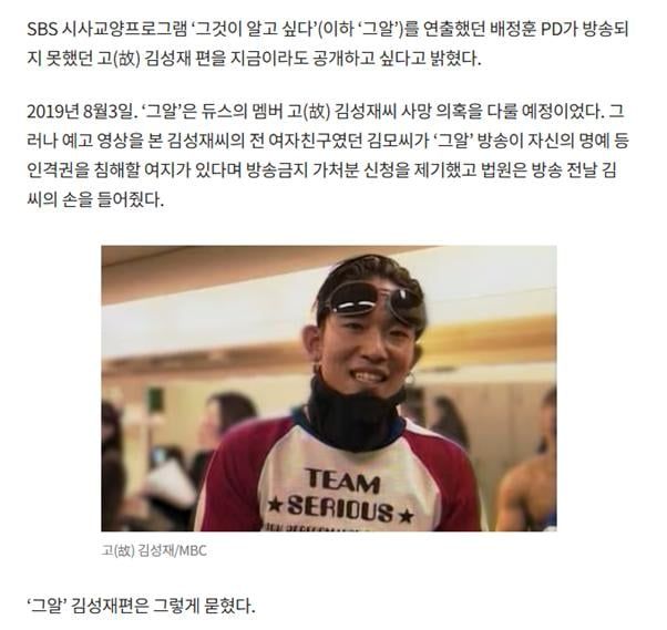 현실로 따지면 그알에서 김성재 사건 다뤘다가 폐기된..