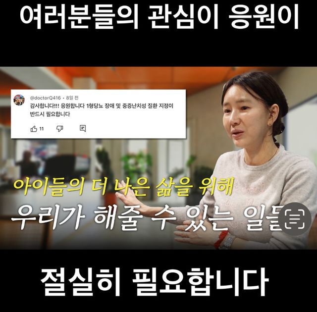 이어 누리꾼들은 "1형당뇨인들을 위해 목소리 내 주셔서 감사드려요. 많은 분들이 1형당뇨를 제대로 알고 적절한 지원과 배려가 이루어졌으면 좋겠어요", "항상 응원할게", "정말 고생 많으실거 같아요", "건강 잘 유지하길 바래요" 등 응원댓글이 이어졌다.