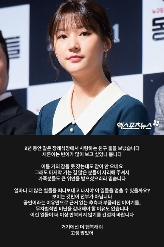 (엑스포츠뉴스 정민경 기자) 배우 故 김새론 비보 후 동료 연예인들이 고인을 추모하며 소신 발언을 남겼다.