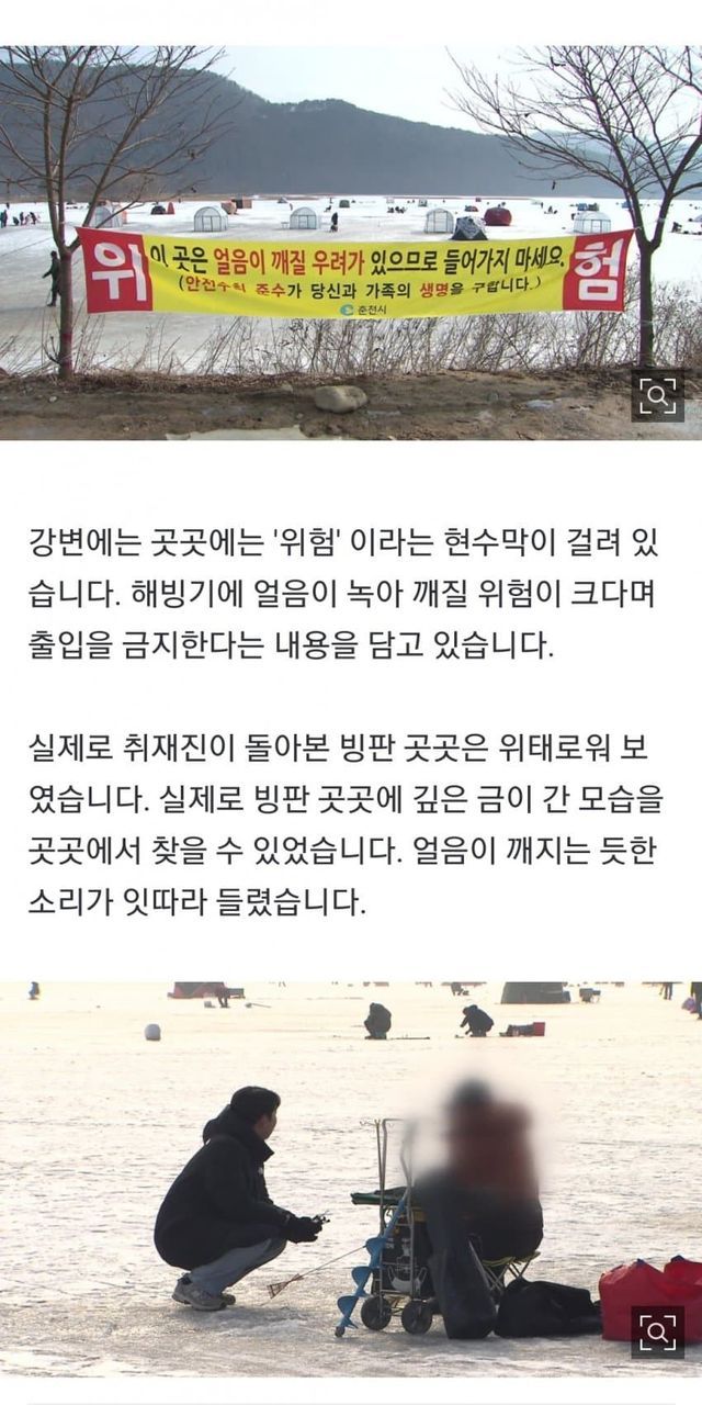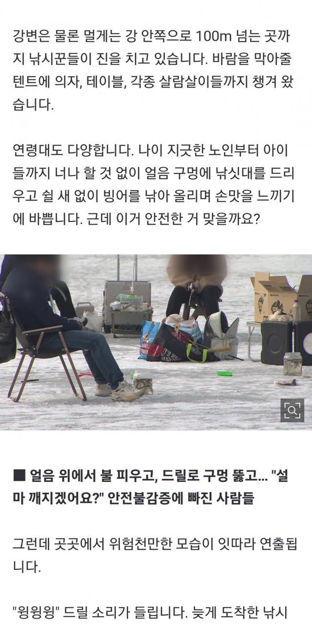 "설마 깨지겠어요?"... 얼음 위에 불 피우고 드릴까지