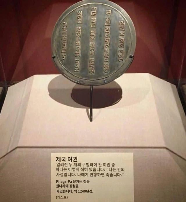 대몽골제국 여권: 이 여행자는 칸의 사절이다. 이 여행자에게 반항하면 죽는다!