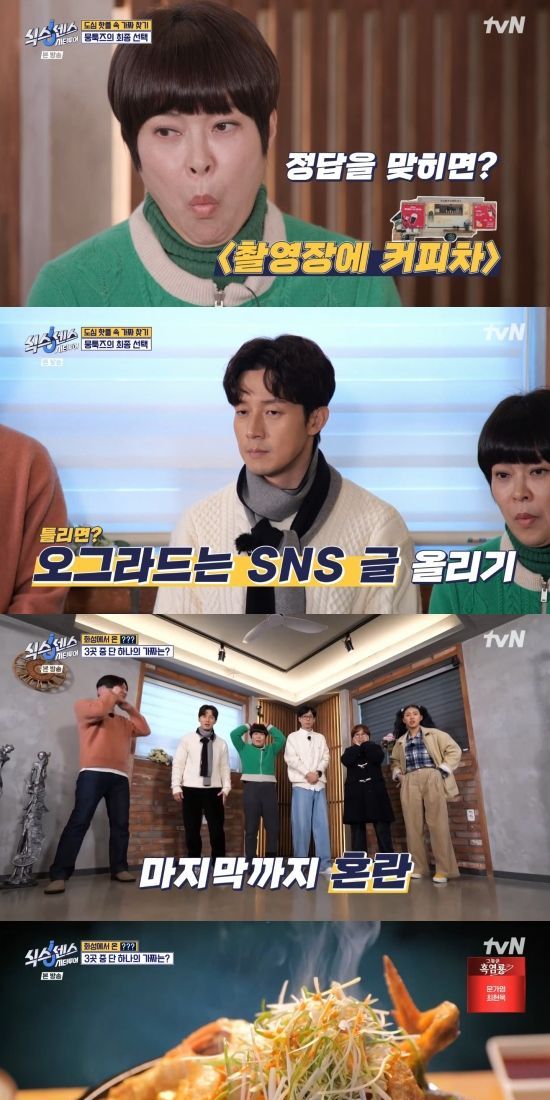 고경표는 "저는 1번이 가짜. 김치폭탄통닭을 더 밖에 광고를 해야 하는데 그 메뉴가 없었다"라며 밝혔고, 조혜련은 "난 2번이다. 일단 너무 과일이 많아"라며 털어놨다.