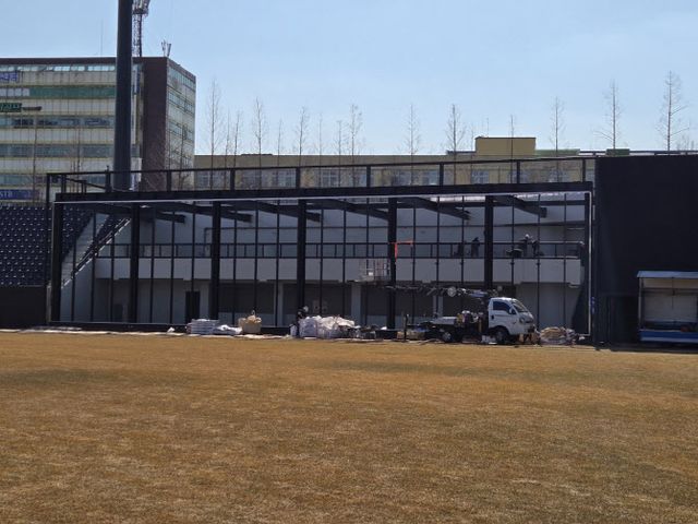 대전시는 20일 미디어데이 행사를 통해 대전의 새로운 명물이 될 대전 한화생명 볼파크를 미리 공개했다. 내부 설비나 조경 등 마무리 공사가 아직 진행 중이다. 그라운드 잔디, 관중석, 실내 훈련장 등 야구를 위한 기본 시설은 준비가 끝난 상태다. 공식적으로 발표된 공정률은 95%다.