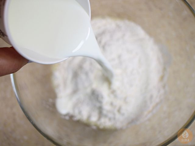 핫케이크가루 1.5컵 부어주세요. (종이컵 기준)