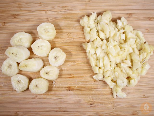 반죽에 섞을 바나나는 작게 썰어주세요.